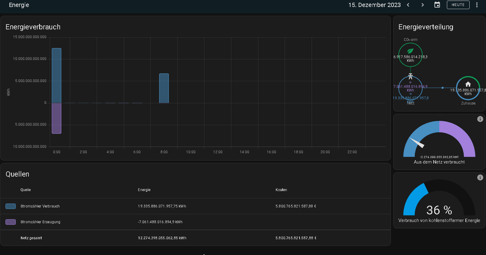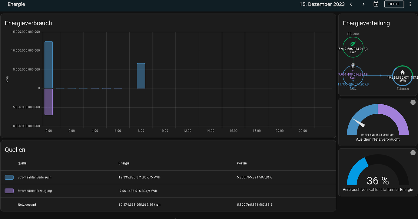 Im Energie Dashboard werden sie aber falsch angezeigt.