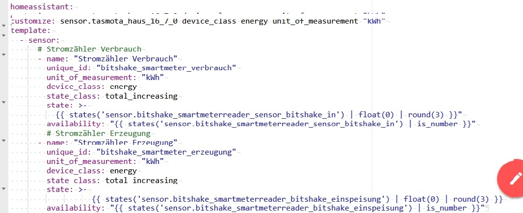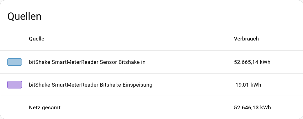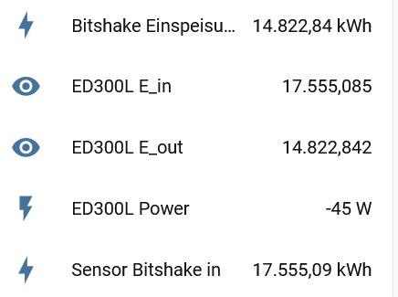 Hallo, nach dem ich es endlich geschafft habe meinen bitshake in meinem HA rein zu bekommen und das Werte im Energiebord angezeigt werden habe ich das nächste Problem. Der zeigt Werte einer Kleinstadt dort an Woran liegt es das es so einen “ Müll “ anzeigt? Zur Info, ich habe einen PV Speicher am laufen, von daher seit Ende Februar keinen Netzbezug! Ich denke der addiert jede Stunde den Startwert ( Verbrauch in kWh ) den er von dem Bitshake bekommen hat als der erste Kontakt war. In der Übersicht vom Tasmota zeigt er die Werte richtig an. Außerdem zeigt er immer Stromfluss vom Netz ins Haus an obwohl gar kein Bezug stattfindet. Der Einspeisewert ist korrekt. Danke Euch für Hilfe
