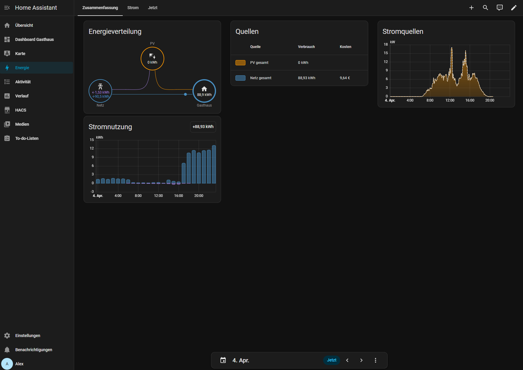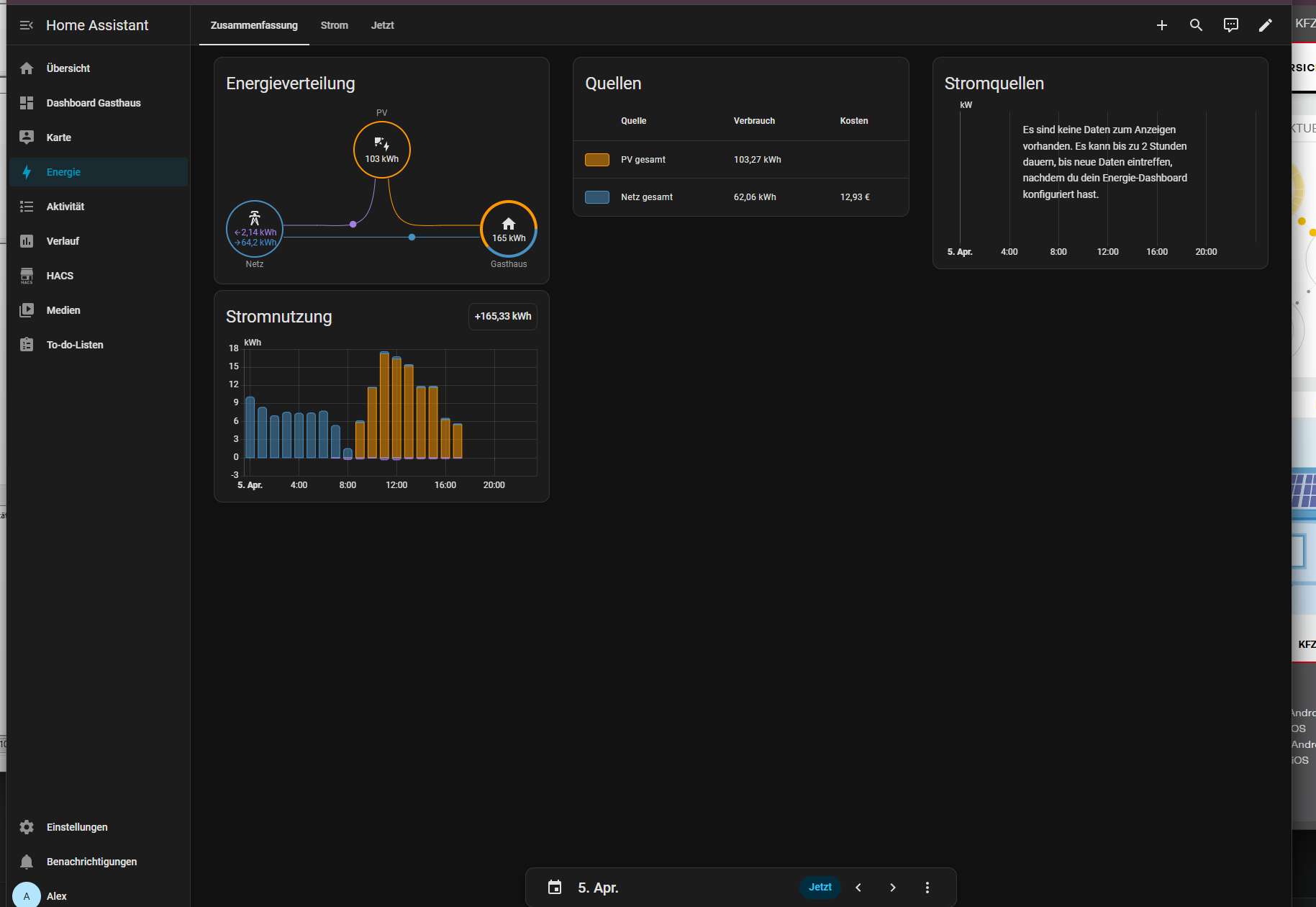 Nun hätte ich noch gerne, dass mein Energiedashboard komplett ist, soweit möglich. Heute jedoch blieb bei Stromquellen die Grafik leer. Jedoch zeigt mir die Energieverteilung alles richtig an. Gestern war bei Stromquellen eine Grafik zu sehen mit der PV Erzeugung, aber dafür war die PV Erzeugung nicht in der Energieverteilung. Was hab ich übersehen?