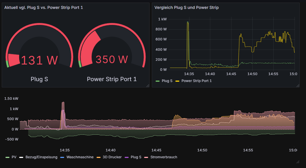 Die beiden Drucker werden jeweils über einen Shelly Plug S gemessen (so wie viele andere Geräte im Haushalt auch).