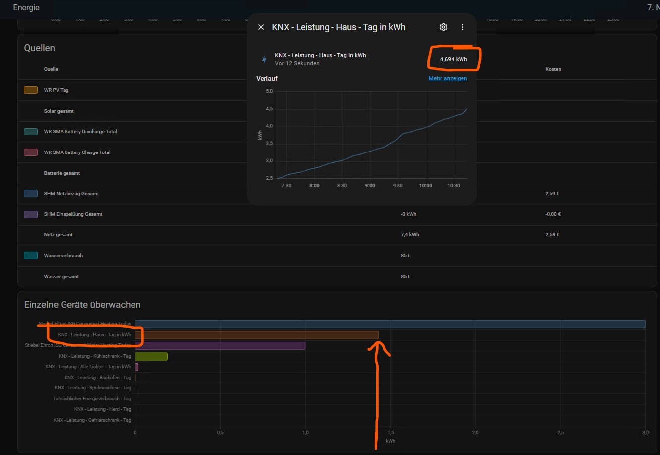 Im Bild seht ihr 4,694kWh der Entität aber der Wert in der Grafik liegt bei 1,4.