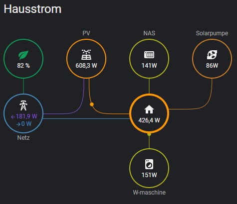 Schade, dachte das geht auch im Energiedashboard. Die Powerflowkarte habe ich schon. Könnte man dort auch leicht die Strom Nutzung und PV Erzeugung wie im Energie- Dash anzeigen lassen?