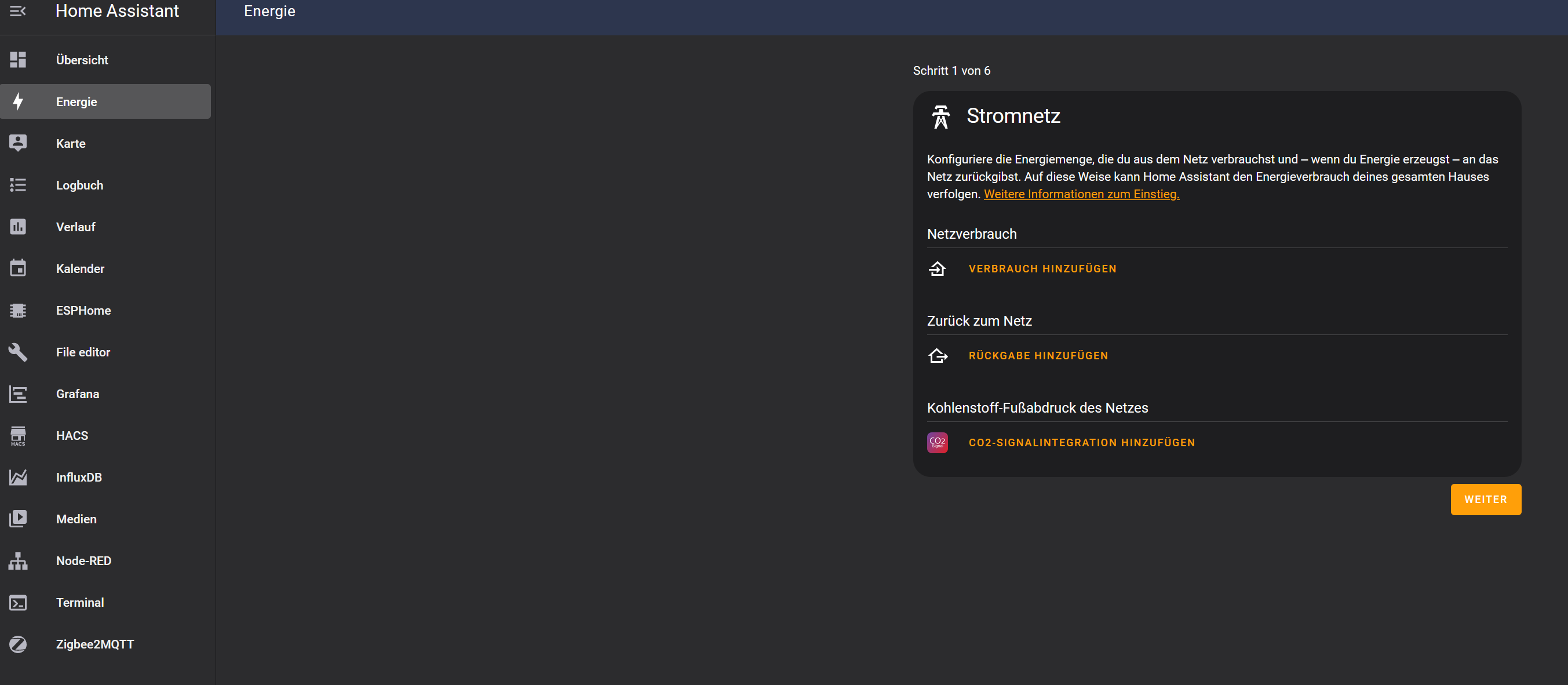 In der configuration.yaml habe ich den Eintrag default_config: hinzugefügt und das Energieboard ist wieder da.