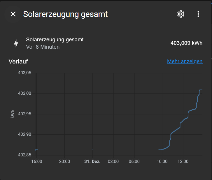 Vielleicht ein schlechter Beispieltag, aber selbst wenn mehr Ertrag vorhanden ist/war, steht dort immer 0 Wh.