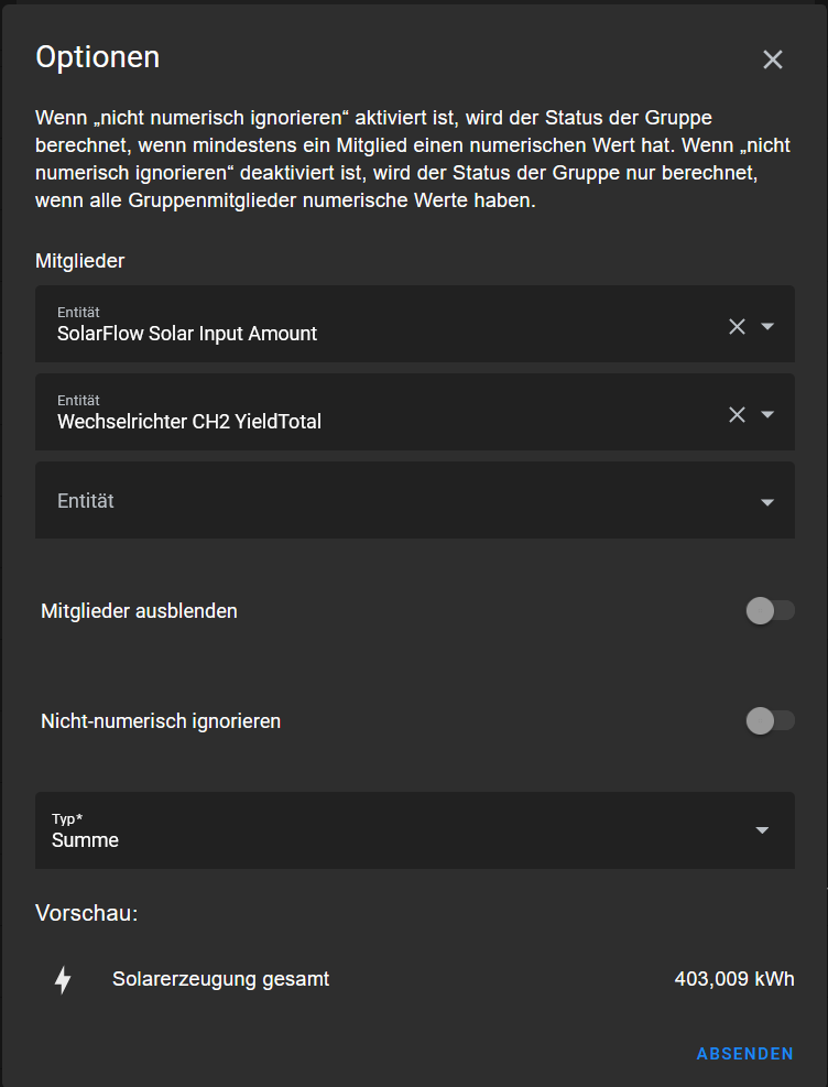Da ich mein Balkonkraftwerk etwas umgebaut habe, habe ich mir für meinen Solarertrag einen Helfer-Sensor erstellt.