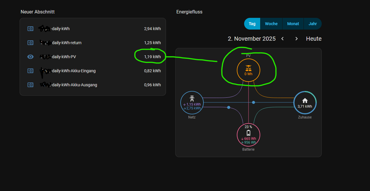 Der Sensor an sich zeigt auch die korrekten Werte nur wird halt in der Energy Flow Card Plus immer 0 Wh angezeigt.