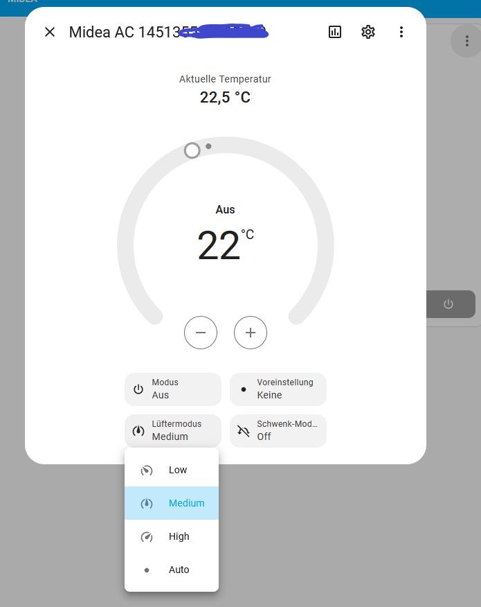 Aber nun würde ich auch gerne eine Karte machen in der man die LüfterStufen einstellen kann, aber ich finde da keine Entitäten für ? Ist das möglich, dass das garnicht geht ?