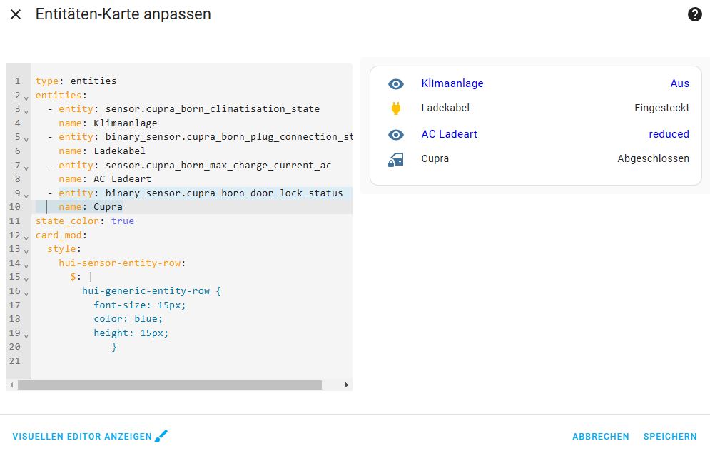 Die Standard Entitäten Karte kann ich mit card mod so ändern, dass ich den Zeileanabstand und die Schriftgröße einstellen kann ABER nur wenn es Messwerte sind.