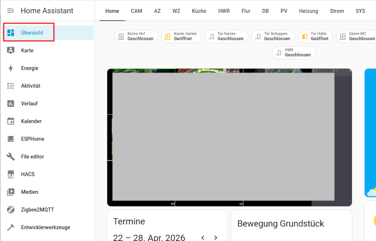 Das von HA automatisch erstellte Dashboard Übersicht (Bsp.)
