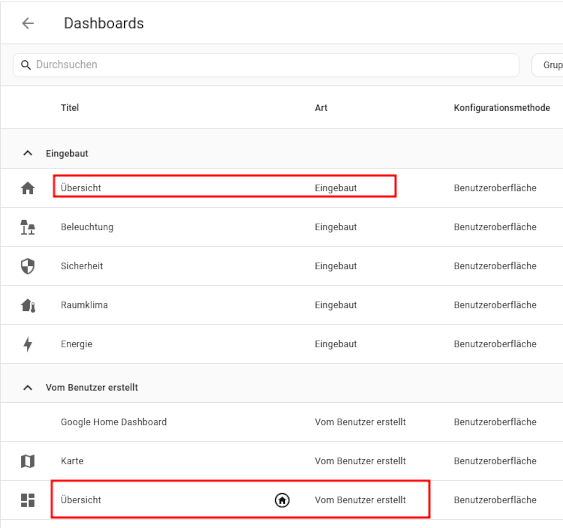 Auch ein/Dein eigenes Übersicht-Dashboard? Ich kenne Deine eigenen Dashboards ja nicht, aber ich nutze hier ein eigenes Dashboard das ich dann zum Standard-Übersicht-Dashboard gemacht habe (die drei Punkte neben dem Dashboard bei der Dashboard Übersicht anklicken). Sieht man ja auch durch das kleine HA Icon in meinem ersten Screenshot unten bei den “Vom Benutzer erstellt” Dashboards.