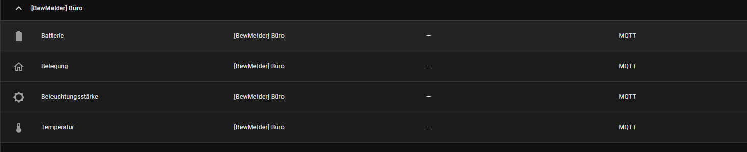 Bei dem einen Sensor (Büro) finde ich die Entität “Beleuchtungsstärke” und bei anderem (Waschküche) nicht.