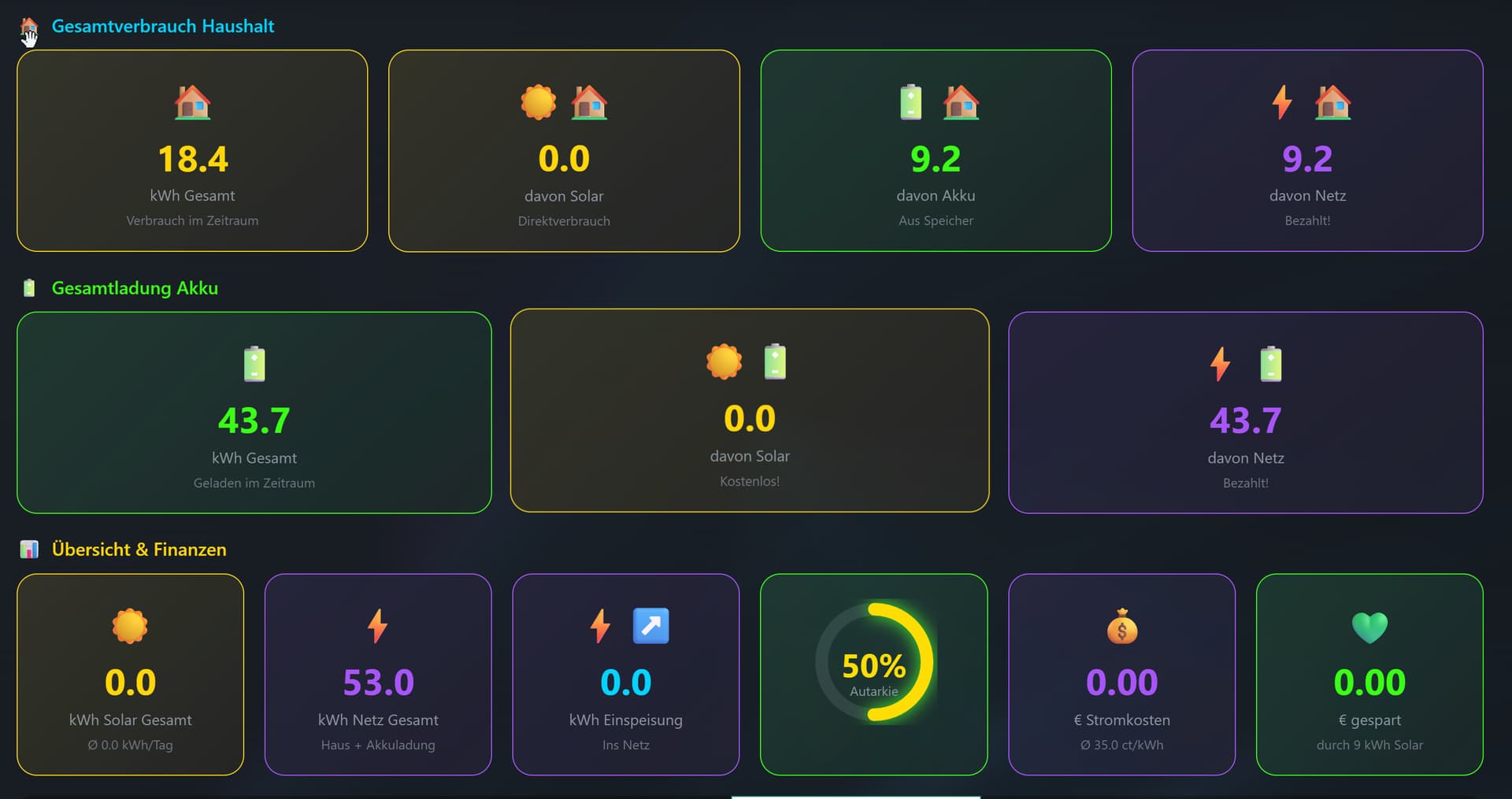 50% Autarkie, obwohl die Batterie bisher nur vom Netz geladen wird - da stimmt was nicht.