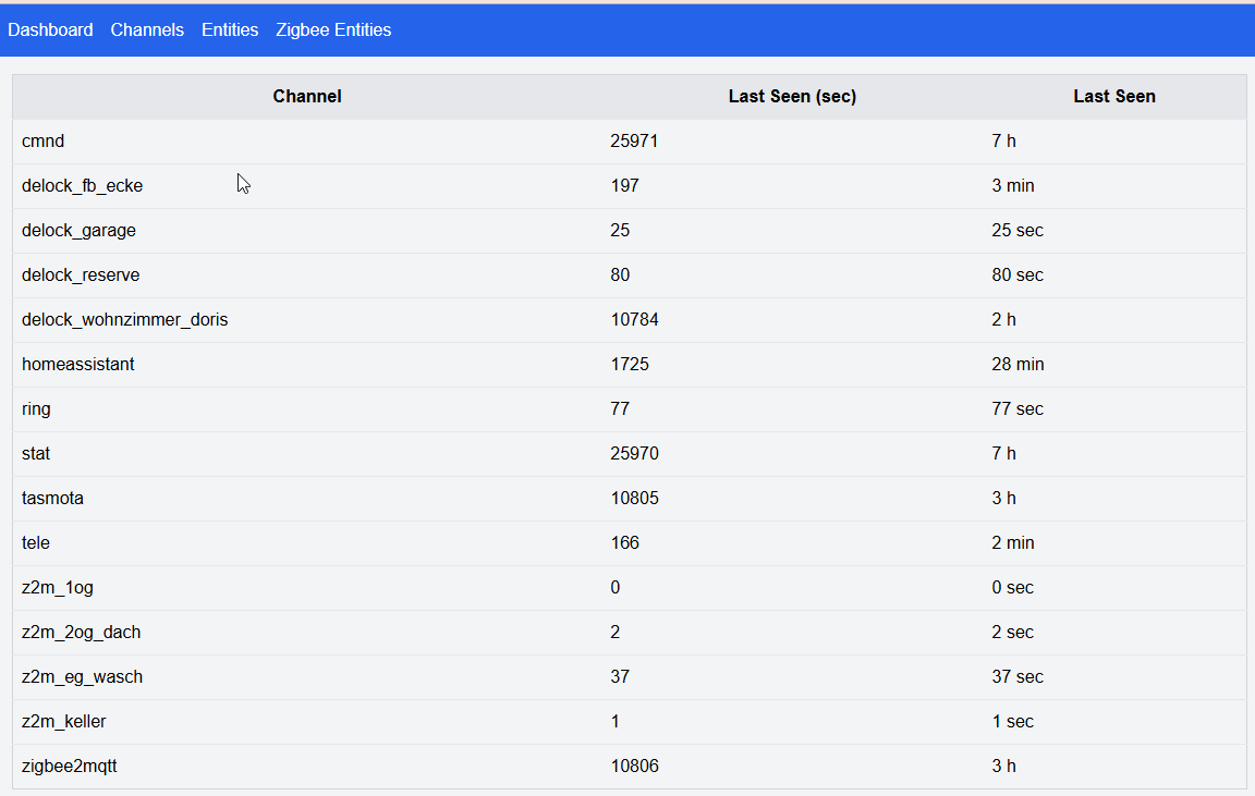 Ich speichere pro Channel also ersten Teil des Topics damit ich später schneller einen Alarm bauen kann wenn ein channel länger off ist. Wie genau weis ich nocht nicht.