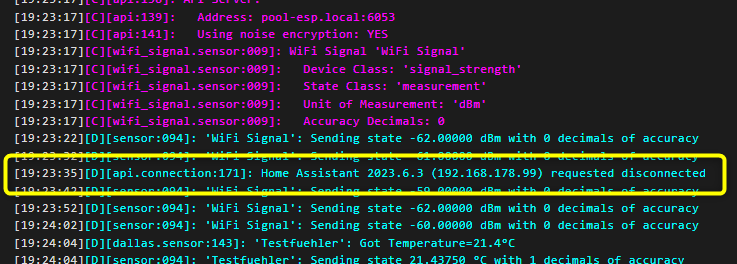 Wenn ich den USB-Stecker ziehe klappt es wieder kurz, danach ist der ESP im WLAN sichtbar aber in HA ‘nicht verfügbar’