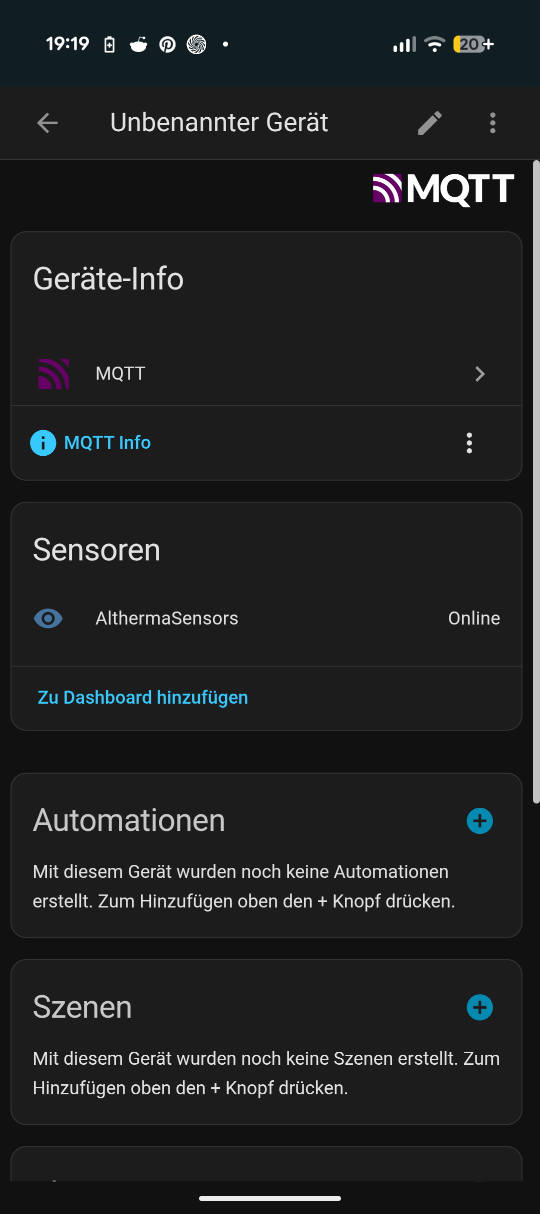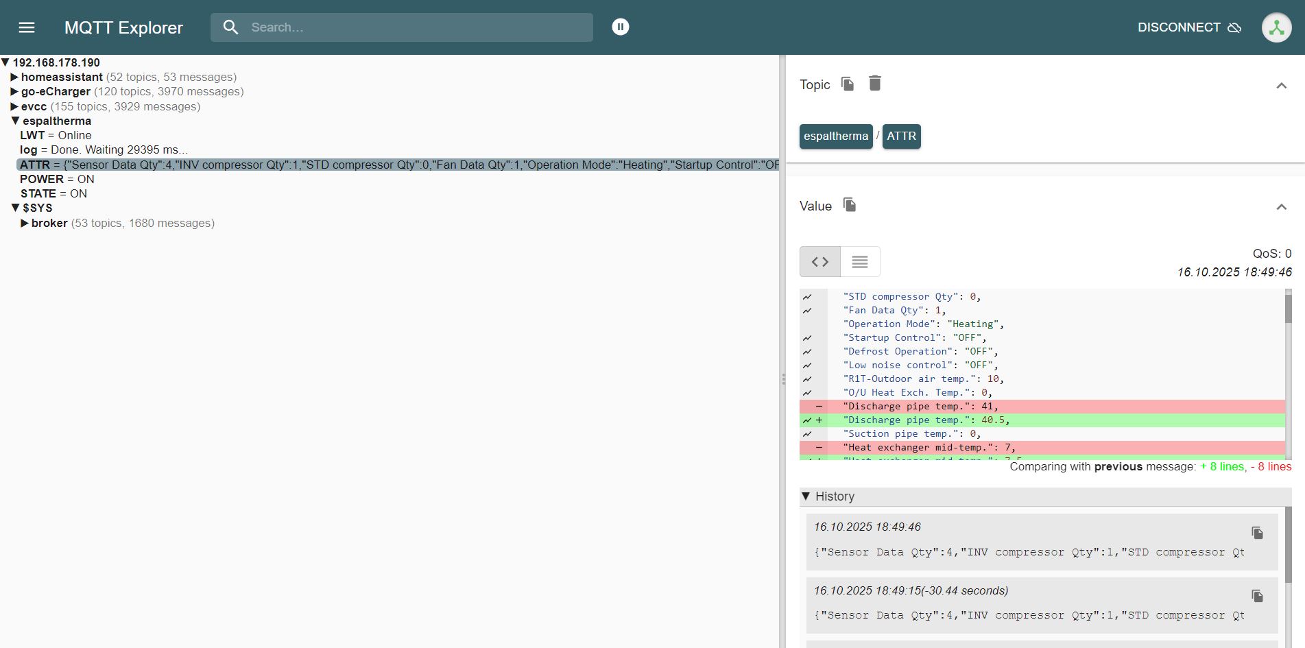 Ich hatte eigentlich erwartet, dass nach Neustart Daten im MQTT Broker eintrudeln. Übrigens hatte ich in HA in der configuration.yaml die Sensoren als Template angelegt.
