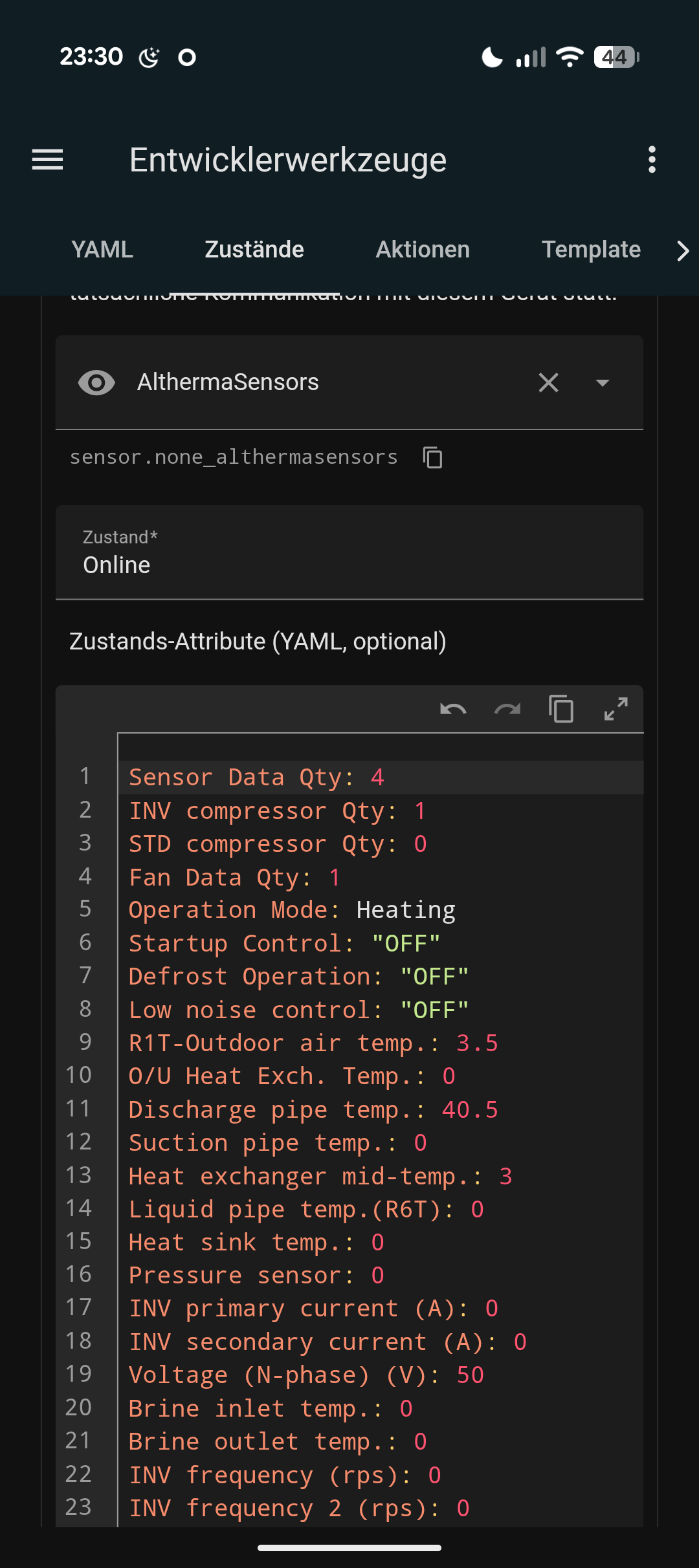 Und wegen der .yaml: da ist in der Anleitung ja angegeben, das in folgender Form einzutragen. Da wird dann wie geschrieben in den Sensoren was angezeigt, aber ohne Wert. Muss da noch was dazugefügt werden in der .yaml?