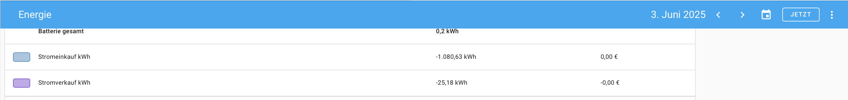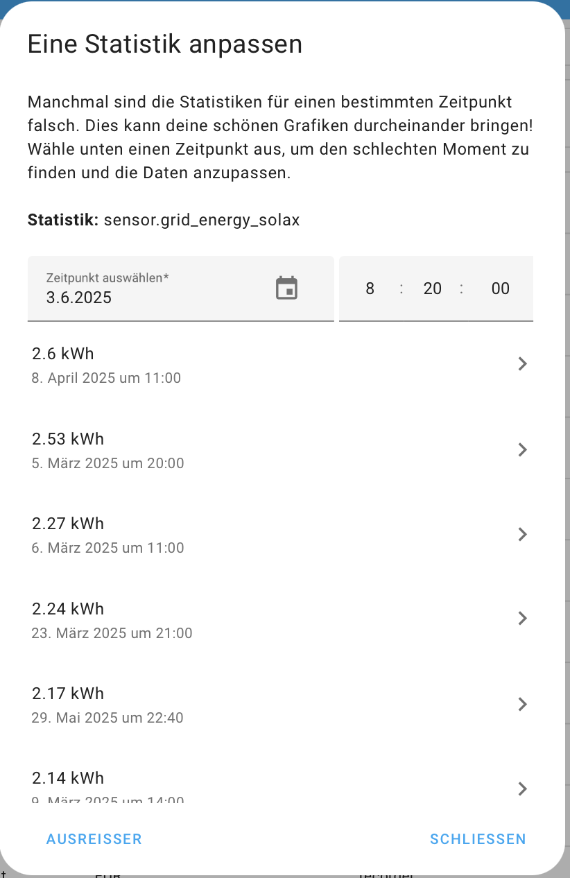 Ich habe jetzt nur das Problem, dass ich an einem Tag Minus 1000 kWh Strom eingekauft habe. Das versaut mir leider so ziemlich jede Statistik zum Thema Solar auch langfristig.