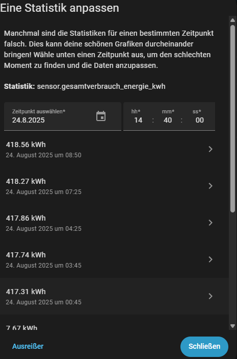 Als kleine Anmerkung: Die Verbräuche ändere ich nun fast täglich manuell über die Statistik & Ausreißer.