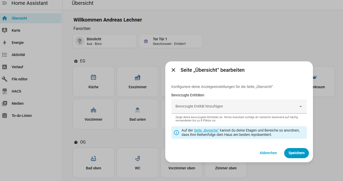 Ganz oben im Dashboard stehen die Favoriten.