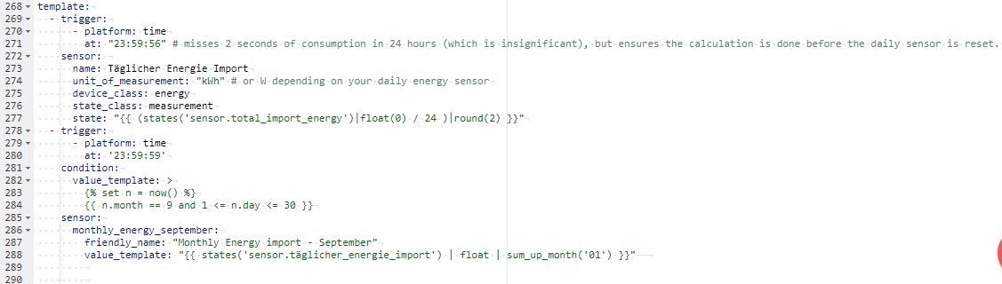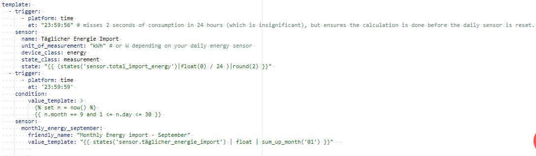 Invalid config for [template]: invalid template (TemplateAssertionError: No filter named 'sum_up_month'.) for dictionary value @ data['sensors']['monthly_energy_september']['value_template']. Got "{{ states('sensor.täglicher_energie_import') | float | sum_up_month('01') }}". (See /config/configuration.yaml, line 278).