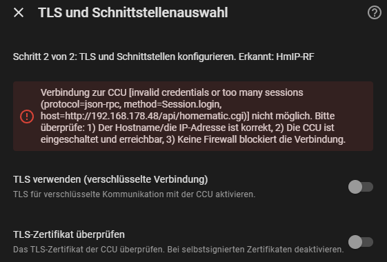 Ich bekomme diesen Fehler bei der Homematic/OpenCCU Integration. OpennCCU läuft einwandfrei nur bekomme ich sie nicht in den Homeassistent.
