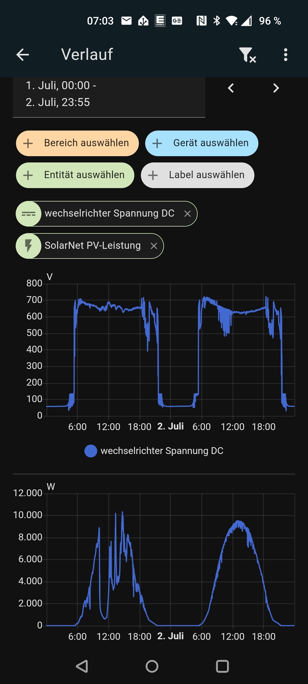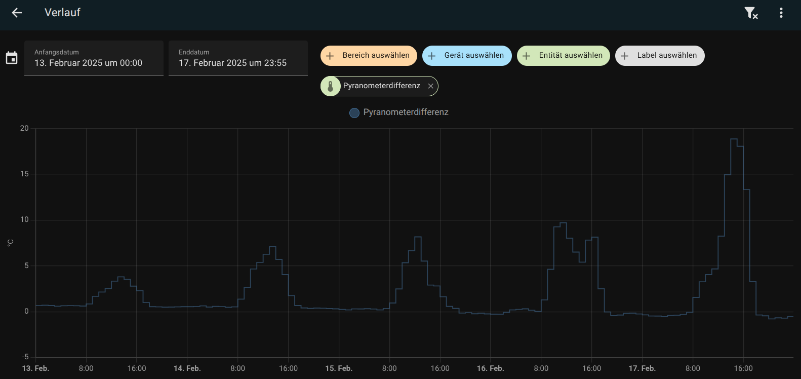 Werde dem ganzen jetzt erst mal ne testphase geben. Was man natürlich noch machen könnte, wäre den grenzwert in Abhängigkeit zur Außentemperatur höher oder niedriger ansetzen. also z.b. bei 25°C nimm exakt meinen eingestellten grenzwert. Für jedes grad höher beschatte schon bei z.b. 5% weniger. Also bei 30°C schon bei 25% Leistungsfaktor. Ob der durchschnitt von 5 minuten bereits ausreicht um ein unruhiges beschatten zu vermeiden, muss ich auch noch rausfinden.