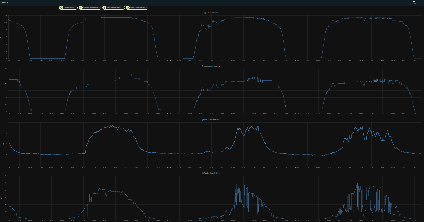 Damit das nicht bei jeder Wolke rauf und runter fähr, nehme ich den durchschnitt der letzten 5 Minuten. Als grenzwert für die Beschattung, habe ich jetzt mal 50% festgelegt.