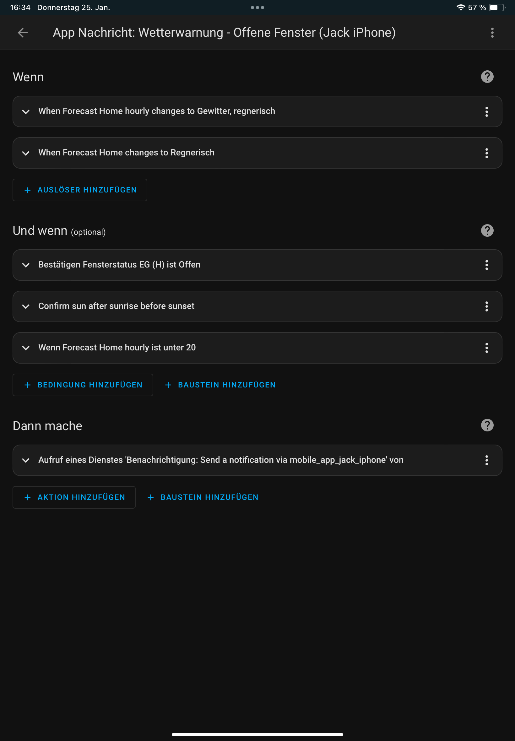 Kannst du, oder auch gern jemand anders - mal einen Blick drauf Werfen, ob das sinn ergibt? So eine Wetter Automation lässt sich ja nur bedingt testen