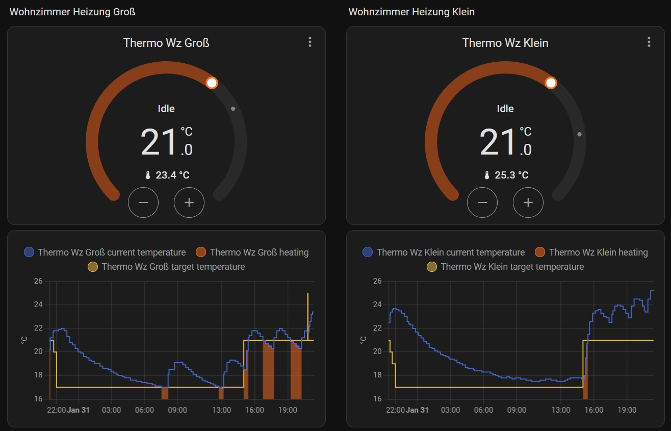 Etwas Vorgeplänkel bevor ich zu den Bosch Thermostaten komme: Ich habe wir vor ein paar Wochen einen Satz Heizkörper-Thermostate von TP-Link gekauft und bin damit leider nicht zufrieden, da ich (aufgrund von mangelnder Recherche meinerseits) nicht wusste, dass diese Thermostate nur die zwei Betriebszustände “Vollgas” und “Leerlauf” beherrschen und der Temperaturverlauf deshalb teils extrem schwankt – und da sich insbesondere mein Gaming-PC-Bereich in der Ecke zwsichen zwei Heizkörpern befindet, ist das echt unangenehm, da ich die meiste Zeit des Abends direkt zwischen diesen Heizkörpern sitze. Als die beiden Thermostate diesen Bereich dann irgendwann auch noch auf fast 26°C anstatt der angepeilten 21°C aufgeheizt haben, bin ich unter den Schreibtisch gekrabbelt, um frustriert die Thermostate wieder abzubauen und jetzt stehen die auf eBay zum Verkauf… ![]()