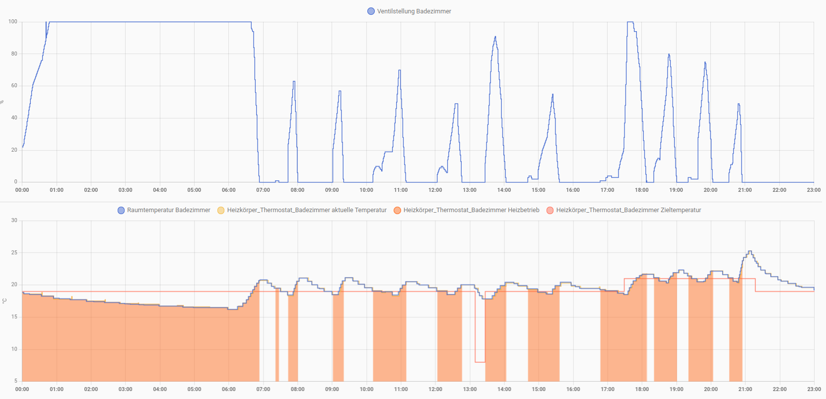 Ich bin deshalb jetzt auf der Suche nach Thermostaten, die nicht nur die zwei Betriebszustände “Vollgas” und “Leerlauf” haben, sondern die auch noch irgendwelche Zwischenstufen, damit die Thermostate eine mehr oder weniger konstante Temperatur halten können anstatt immer herum zu oszillieren.