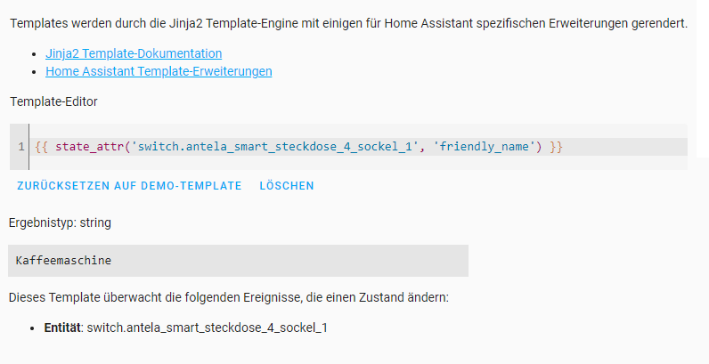 Allerdings erhalte ich beim Testen (also wirkliches Ausschalten der betreffenden Steckdose) zwar eine Meldung aber statt “friendly_name” wird “None” ausgegeben.