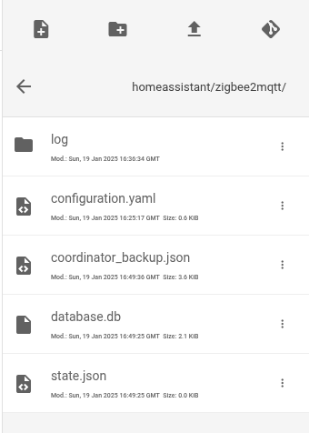 Anm.: Sollte es ggf. doch ein Problem bei der Z2M Installation gegeben haben und man möchte noch einmal kompl. bei Null anfangen, reicht es nicht aus das Z2M Addon einfach nur zu deinstallieren. Dadurch verbleiben nämlich noch “Reste” in dem Z2M Ordner unter HA. Stattdessen muss man aus dem Z2M Ordner unter /homeassistant/zigbee2mqtt die darin noch vorhandenen Dateien per File Editor Addon löschen. D.h. die Datein die man hier sieht.