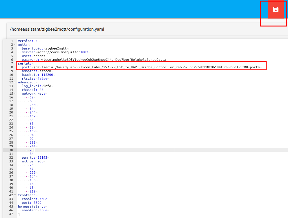Diesen Pfad trägt man jetzt bei serial: ein und ersetzt dort alten …/ttyUSB0 Pfad. Das sieht dann so aus.