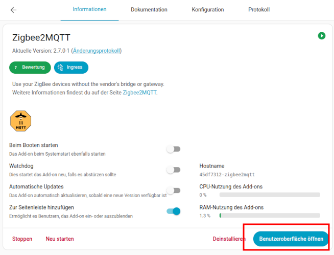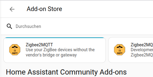 Voraussetzung dafür ist das das Z2M Addon über den HA Add-on Store bereits als Repo hinzugefügt wurde, dort vorhanden ist
