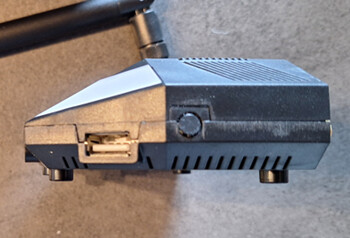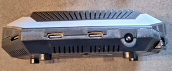 Rückansicht mit LAN Buchse, USB-C Anschluss Nr.4 für DC IN, 3,5mm Audio Klinkenanschluss und die beiden Antennen Schraubanschlüsse. Rechte Seite mit USB-A Anschluss und Antennenanschluss für LTE-4G Addon (Optional) Vorderseite mit zweimal USB-C Buchsen und Infrarot SendeLED. Zum Lernen der IR-Codes befindet sich auf der Oberseite die EmpfangsLED Linke Seite für den Anschluss des Z-Wave Addon. Bei der Öffnung rechts (Schlitz) dachte ich zuerst an einen SD-Karten Slot. Aber dahinter verbirgt sich nichts, wie man später auf den Platinenbildern sehen kann. Auf der Unterseite sind die Anschlusspins für ein USV Modul, das sich jedoch noch in der Entwicklung befindet. Oberseite mit IR EmpfangsLED und den drei Knöpfen (Noch nicht beleg- nutzbar) sowie dem WLED Band in Rainbowoptik.2. Das modulare Konzept (Mein Setup)