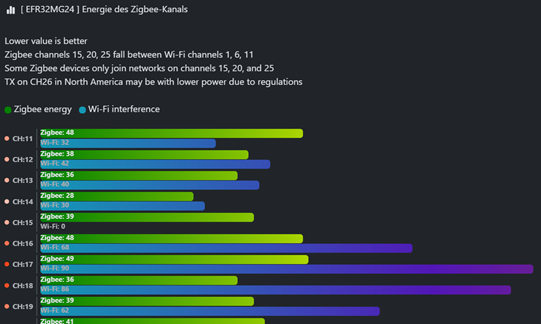Hier gibt es eine interessante Neuerung. Die Ermittlung der frequentierten Zigbee und WiFi Kanäle.