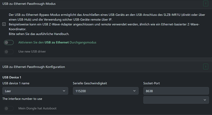 Um Geräte an den 3 (Nr. 4 ist auf der Rückseite und dient der Stromversorgung via USB) USB-Ports zu betreiben und weiter zu reichen, muss USB-Passthrough aktiviert sein.