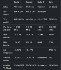 · Einfachheit: Ein Klick für Firmware-Updates (sowohl für den ESP32 als auch für die Funkchips!).