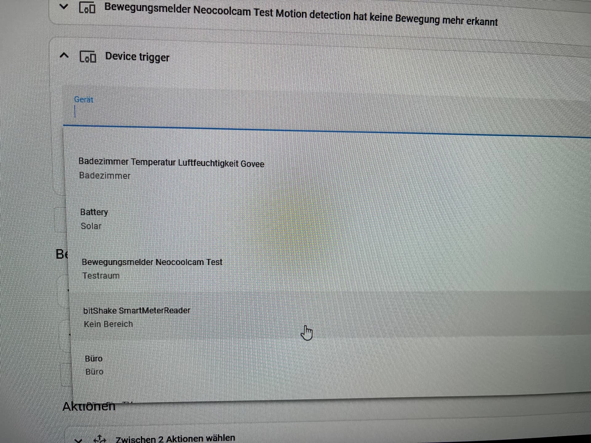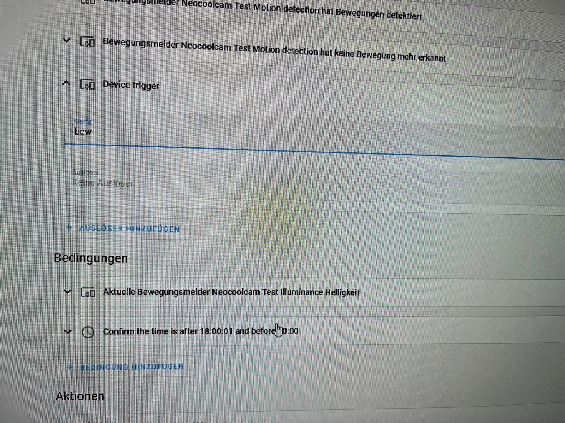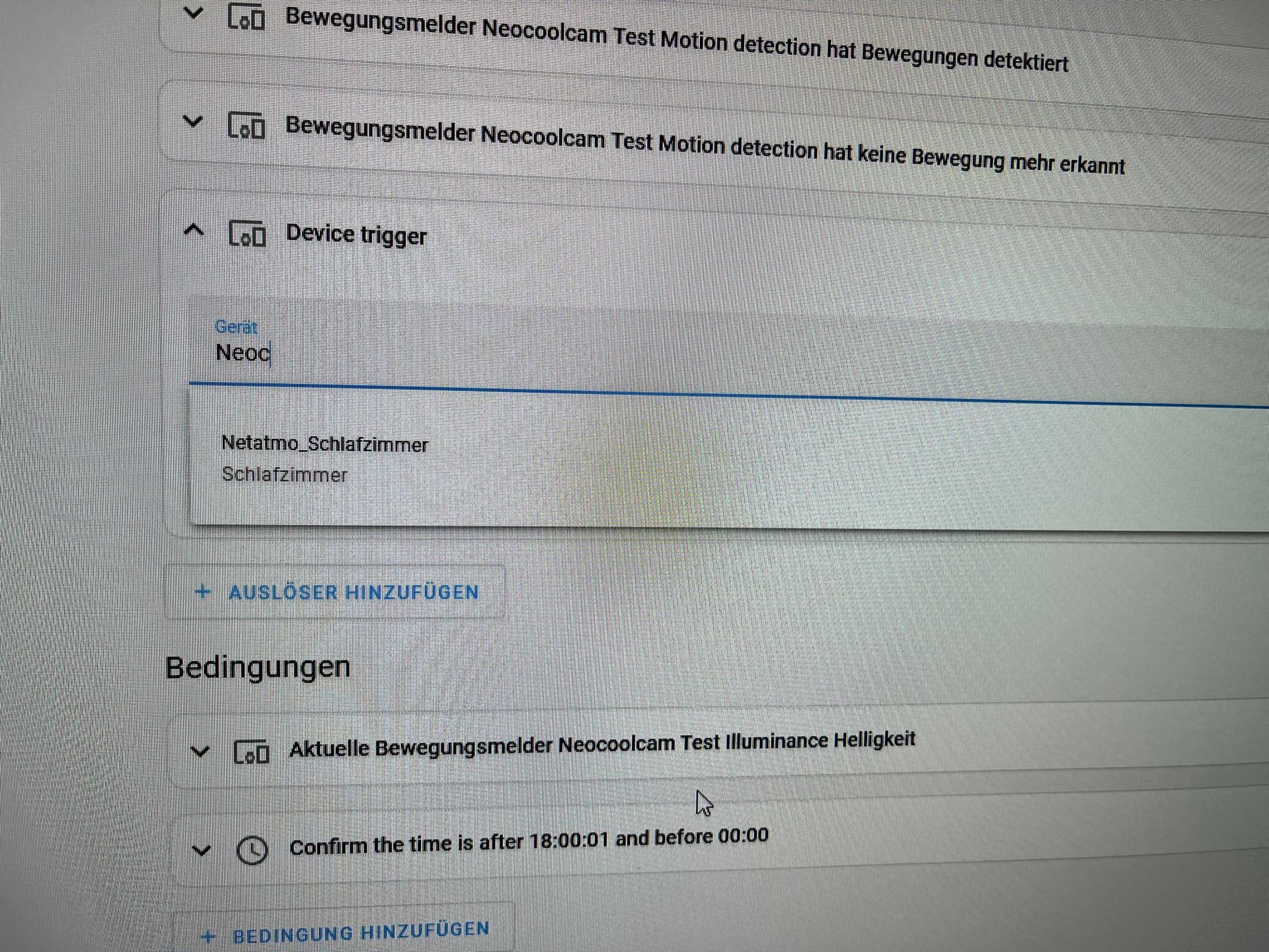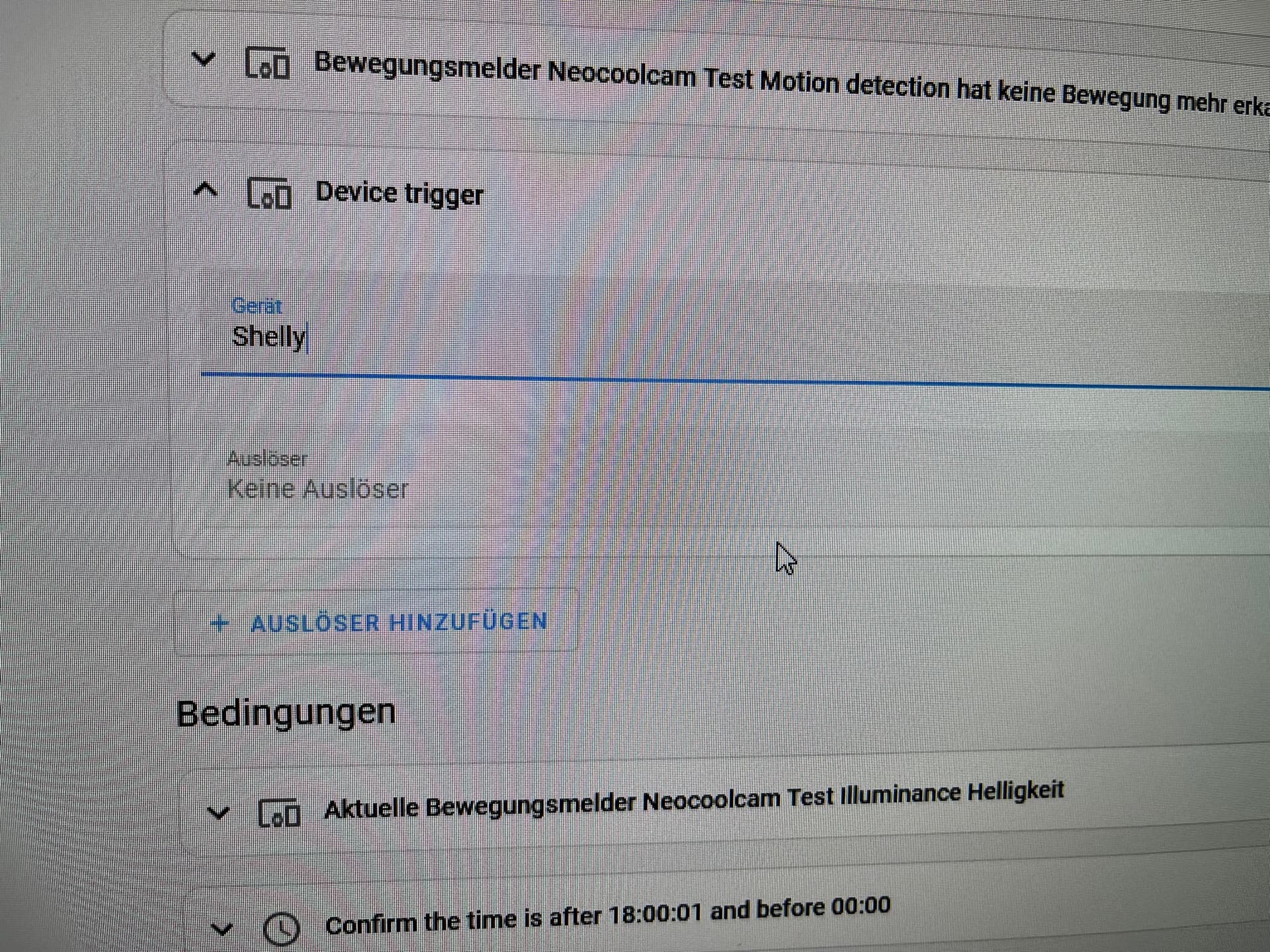 Hier ein Beispiel: 2 Trigger/Auslöser die der selbe Bewegungsmelder sind.