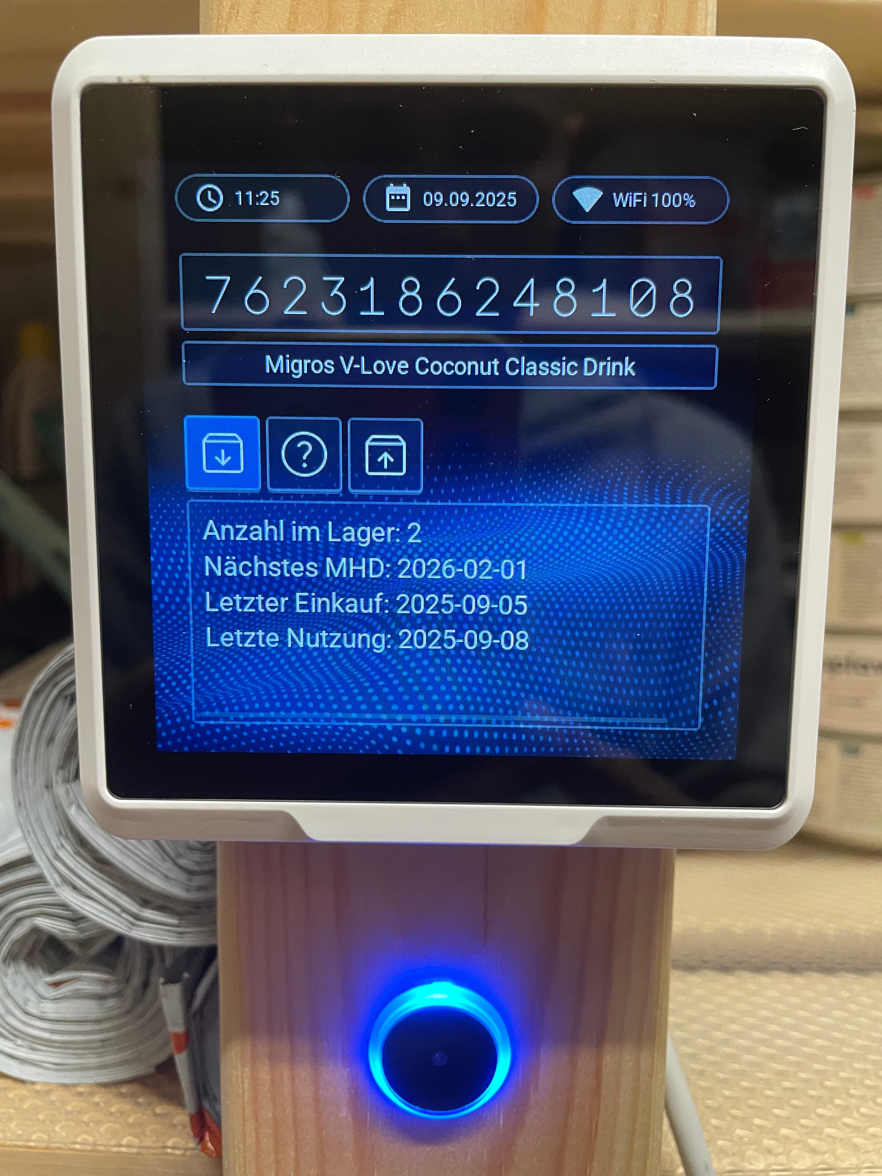 Das ganze basiert auf ESPHome mit einem Barcodescanner und übermittelt alles via API an Grocy was in einem Docker läuft (ist zuverlässiger als die Add-On Version in HA)