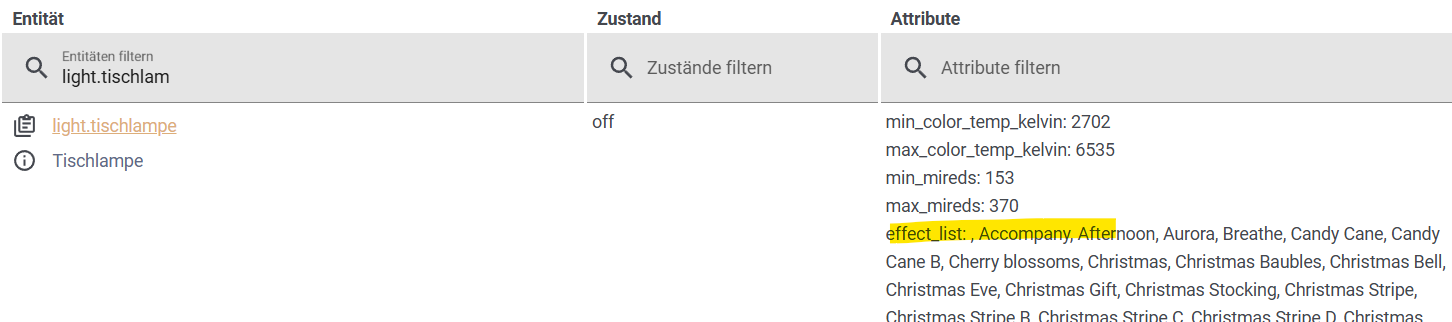 Leider habe ich es maximal geschafft, die Helligkeit, Farbe und das An/Aus zu integrieren.