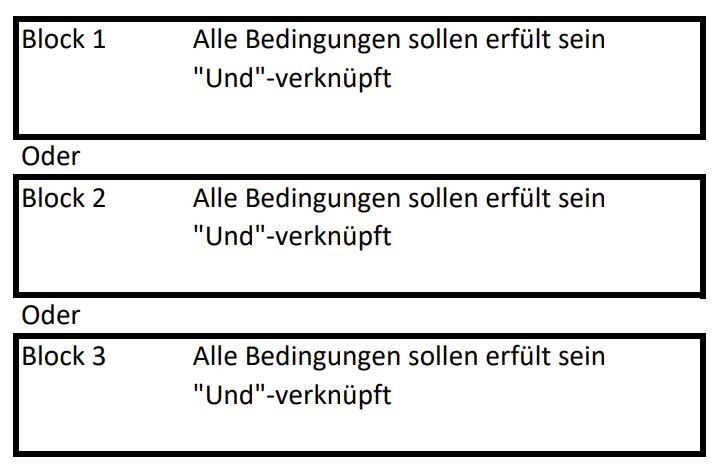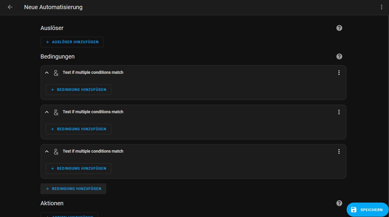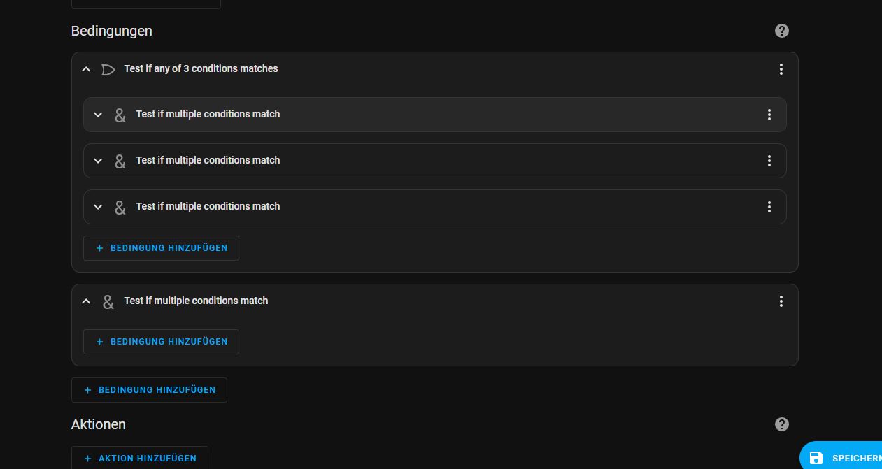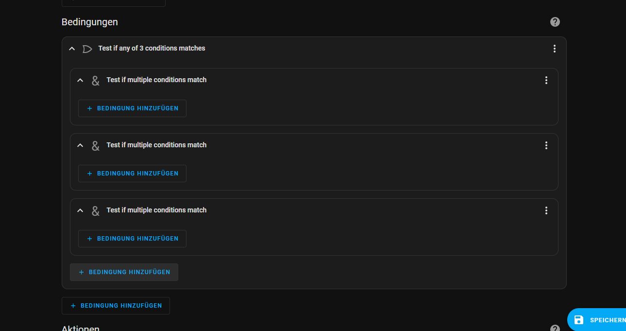 Ich glaub alles was Du unter „Bedingungen“ erstellst wird grundsätzlich „verundet“ also diese Bedingungen müssen immer alle zutreffen, damit Du überhaupt zu den Aktionen gelangst.
