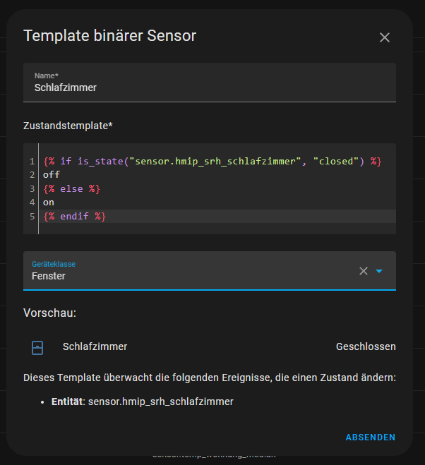Hallo zusammen, ich habe mir einen Helfer für binary_sensoren erstellt, da ich vor habe, mir auf dem Dashboard anzeigen zu lassen wenn noch irgendwo Fenster offen sind. Funktioniert auch soweit mit den binary_sensoren. Jetzt habe ich aber eine Mengen von Drehgriffsensoren die open, tilted und closed als state haben. Die laufen bekanntlich unter Sensoren und nicht unter binary_sensoren und werden somit nicht berücksichtigt.