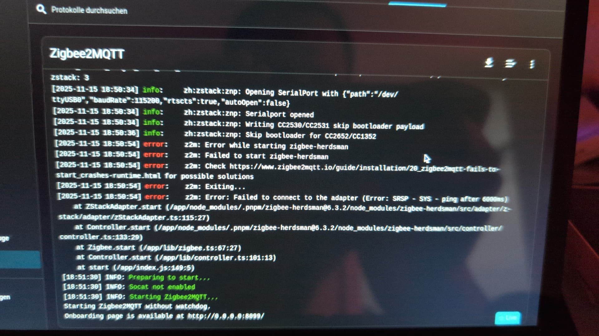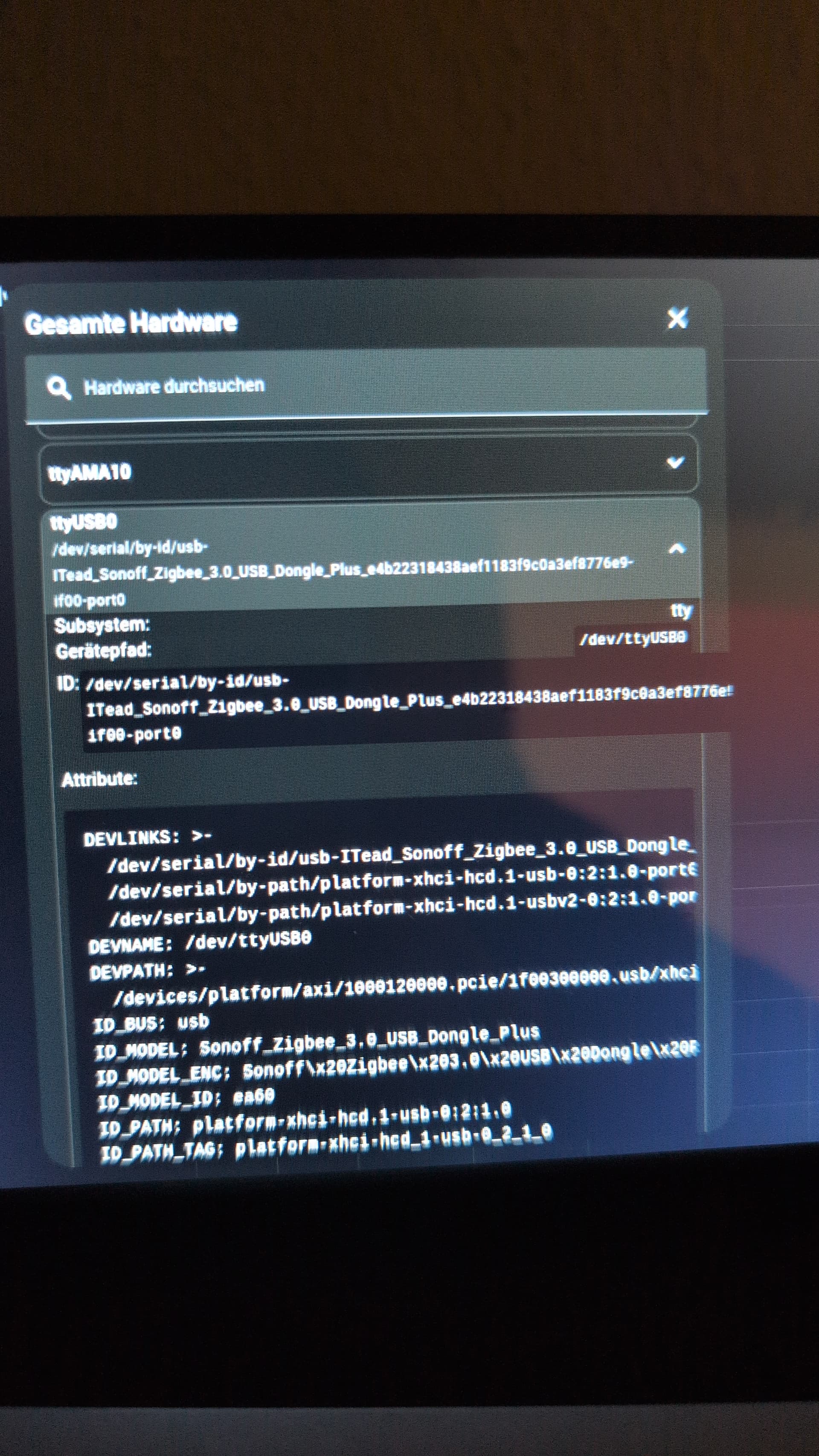 Wenn ich nun gucke, wie der Pfad heißt, wo der Adapter angeschlossen ist, steht IMMER /dev/ttyUSB0 dort. Immer - egal in welchen USB Eingang ich den Stick einstecken. Stick ist mit einer USB Verlängerung angeschlossen und mindestens 1m von allen Funkquellen wie WLAN, Bluetooth entfernt.