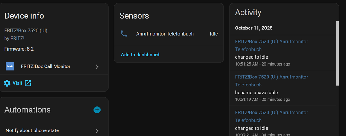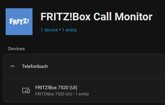 Fritz!Box Call Monitor in Home Assistant hinzugefügt
