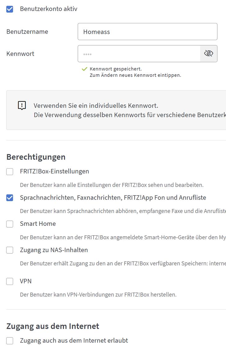 Ich musste somit dort einen zusätzlichen User einrichten und deren IP verwenden. Jetzt funktioniert der Monitor, also der Status funktioniert, er ändert sich zu “ringing”. Es fehlt nur noch die Anrufererkennung aber das bekommt man sicherlich auch noch noch irgendwie hin.