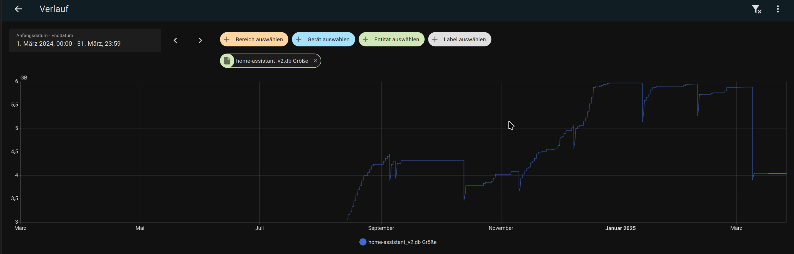 Solange das nicht in die TB geht, ist mir das eigentlich egal, ~ 4 GB ist für mich vollkommen OK, selbst im zukünftigen System, das nur als LXC ohne irgendein Add-on läuft, aber schon alle Entitäten hat, ist das SQLite Datenbankfile ~ 3,5 GB groß, somit gehe ich davon aus, dass das für meine Installation passt, ohne jetzt eine Entscheidung für, oder gegen eine einzelne Entität zu treffen, einfach ausgedrückt, der Standard macht für mich das was er soll ![]()