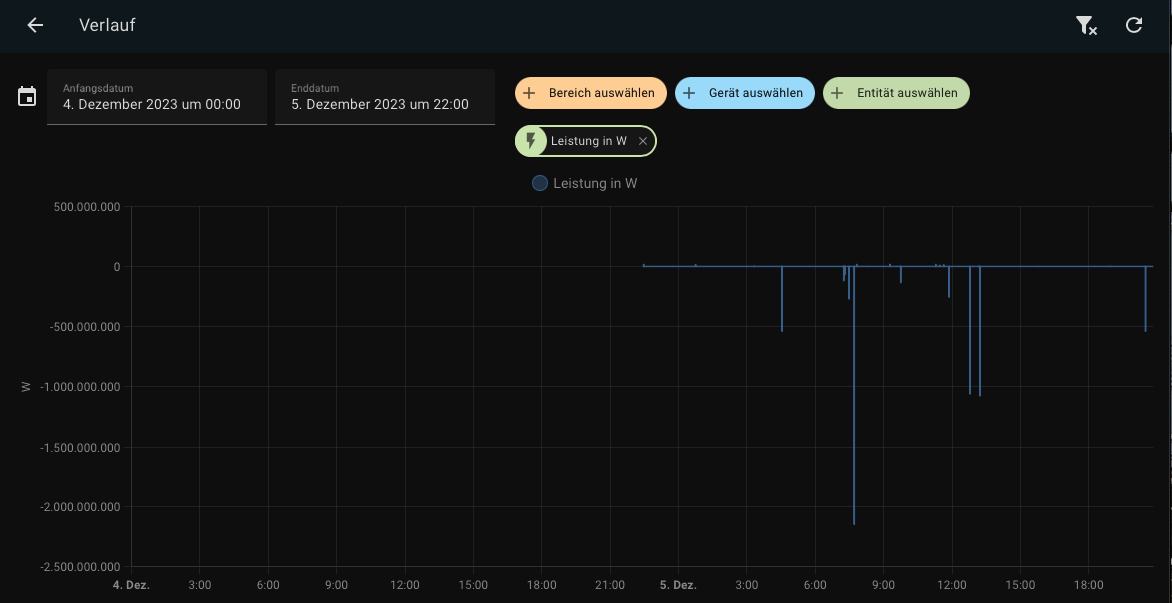 Was noch merkwürdig ist, ist der Verlauf, hier das Beispiel der aktuellen Leistung: