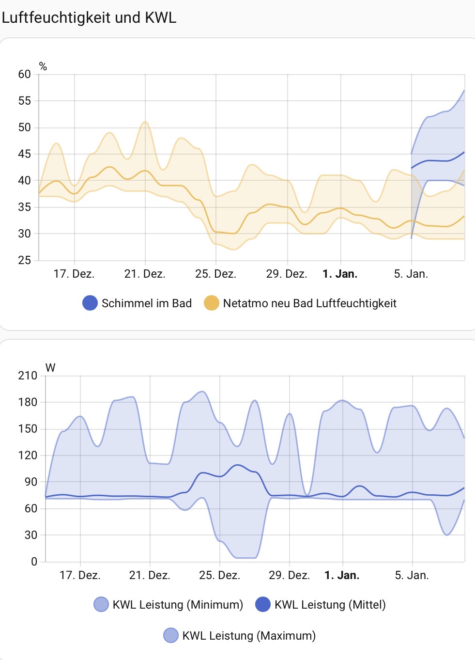 wer kennt es nicht: die Temperatur und die Luftfeuchtigkeit im Bad sind nach dem Duschen höher als “normal”. Wer dann eine kontrollierte Wohnraumlüftung hat, sollte dann keine Schimmelprobleme bekommen. Die KWL hat auch eine Automatik mit RH-Fühler.