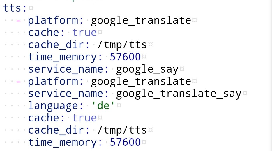 Mache ich. Habe es inzwischen in der configuration.yaml eingetragen und bekomme keine Fehlermeldung mehr. Allerdings bekomme ich immer noch keine Nachricht gesprochen.